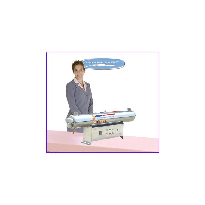 Great for well water and as an add on to any whole house, commercial and industrial water filters or any other 36 GPM flow filtration application. CRYSTAL QUEST® 36 GPM Ultraviolet Water Sterilizer System manufactured with axial flow reactors in 304 stainless steel and come with with 1" MNPT connections.The hard glass germicidal lamps provide an economical way of treating water requiring a 99.99% reduction of bacteria and virus and protozoa. This process is accomplished without adding any harmful chemicals to your drinking water. CRYSTAL QUEST® Ultraviolet Water Sterilizer System is the most ecological way of treating your water… and all for just pennies a day!