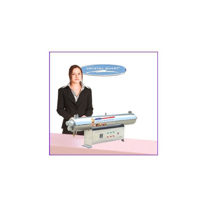 Great for well water and as an add on to any whole house, commercial and industrial water filters or any other 48 GPM flow filtration application. CRYSTAL QUEST® 48 GPM Ultraviolet Water Sterilizer System manufactured with axial flow reactors in 304 stainless steel and come with with 1.5" MNPT connections.The hard glass germicidal lamps provide an economical way of treating water requiring a 99.99% reduction of bacteria and virus and protozoa. This process is accomplished without adding any harmful chemicals to your drinking water. CRYSTAL QUEST® Ultraviolet Water Sterilizer System is the most ecological way of treating your water… and all for just pennies a day!