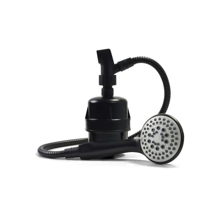 Take a shower with the new high efficiency Black Shower Filter with 5 function massage swivel shower head and experience the difference. Use as a regular showerhead or use as a handheld wand. Featuring ProMax filter technology. Helps protect your skin and hair from unhealthy effects of contaminants that may be in your water. Independent lab tested to reduce/remove 200+ contaminants including fluoride chlorine, heavy metals and more.
