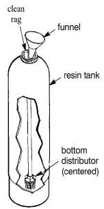 other media from the tank. - Pour the resin/media into the funnel, slowly letting it fall down inside the media