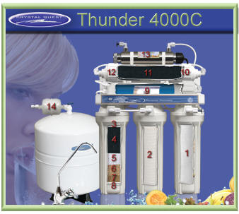The Thunder 4000C is a 14 stage Reverse Osmosis filtration system. It is one of the most advanced and effective systems available. It will remove up to 99.9% of undesirable contaminants and filter particles as small as 1/1000 of a micron.