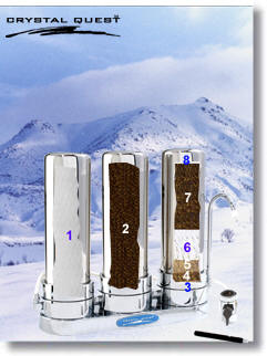 CRYSTAL QUEST® Triple Countertop Arsenic Stainless Steel Water Filter.
